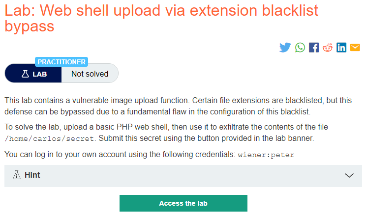 Lab: Web shell upload via extension blacklist bypass 문제 풀이