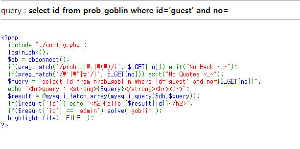preg_match('/\'|\"|\`/i) <- 보게되면 이제는 '와 "로 필터링하는 것을 볼 수 있다. 이제는 다른 방법으로 우회를 해야한다.
