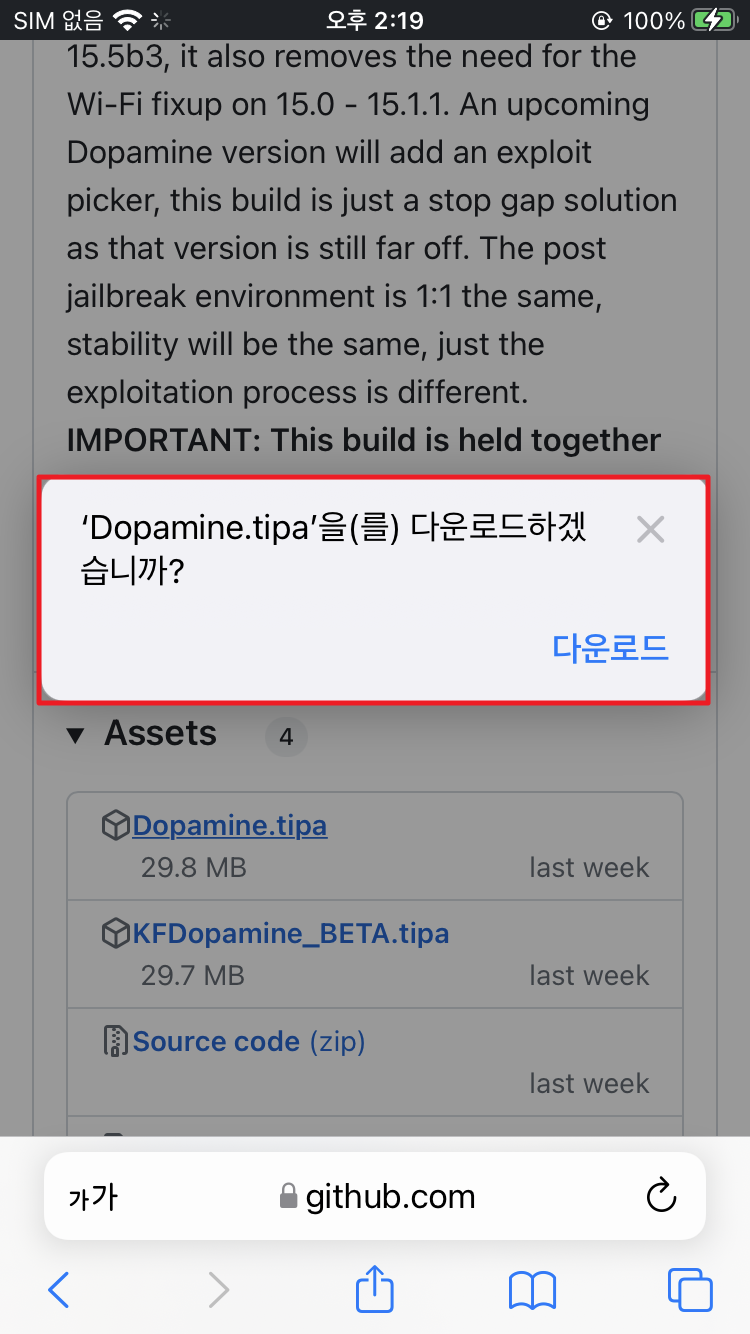 필자의 경우 타 개발자가 기존 dopamine에서 Roothide 기능을 추가한 Roothide dopamine을 설치했다.