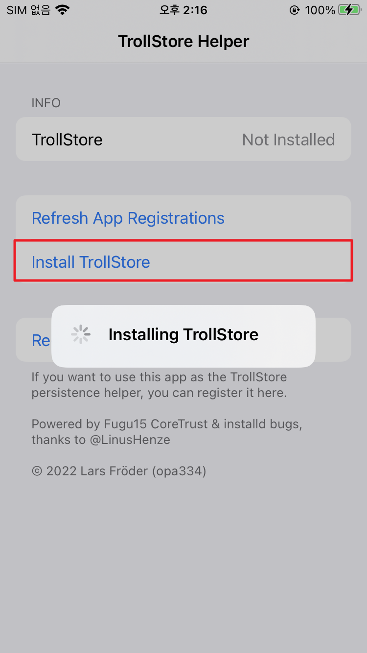 접속 시 Install TrollStore 버튼이 있어서 설치 시 TrollStore가 설치된다. 매우 쉽다.