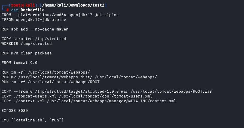 압축 파일의 dockerfile 내용을 보게되면 tomcat으로 구성된 docker 파일임을 확인
