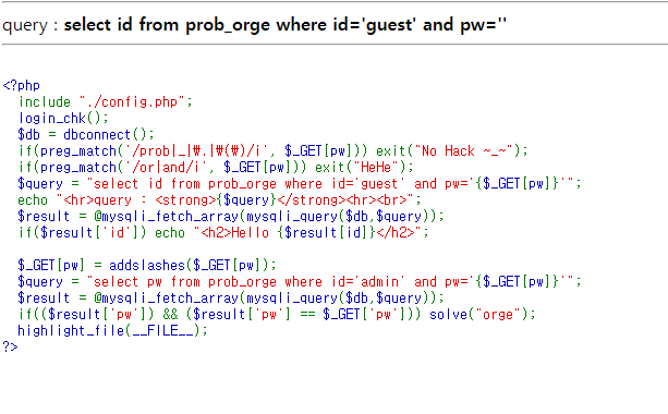 우선 이문제를 해결하기 위해서는 pw와 no의 필터링의 차이를 봐야한다. pw 같은 경우 '를 사용하지 못하도록 되어있는데 이것이 생기면 문제점이 하나 있다. 우선 따옴표를 못넣어서 pw라는 문장에 끝을 못만든 다는 것이다