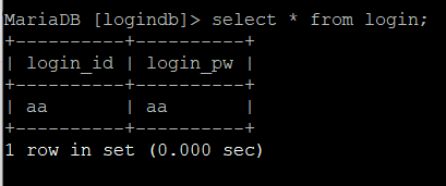 // sql은 내가 요청할 자료이다 필요한 건 id와 pw이기 때문에 login이라는 table에서 id pw의 모든 자료를 가져온다.